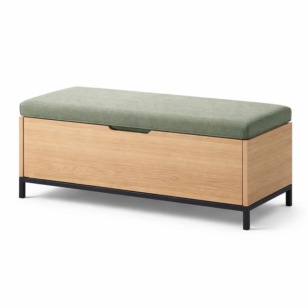 Sitzbank mit stauraum mdf mit eichenfurnier und stoffpolsterung