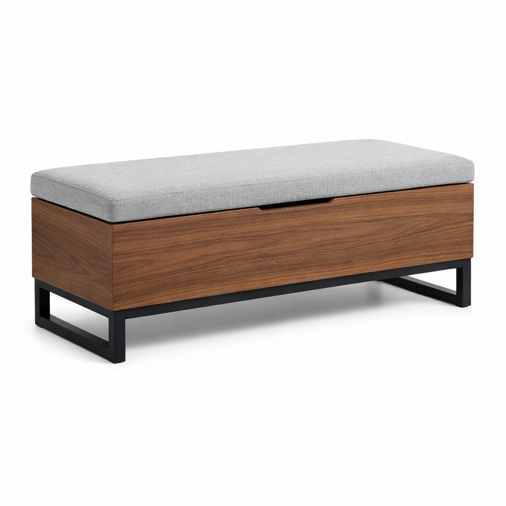 Sitzbank mit stauraum leinen grau walnussholz stahlbeine